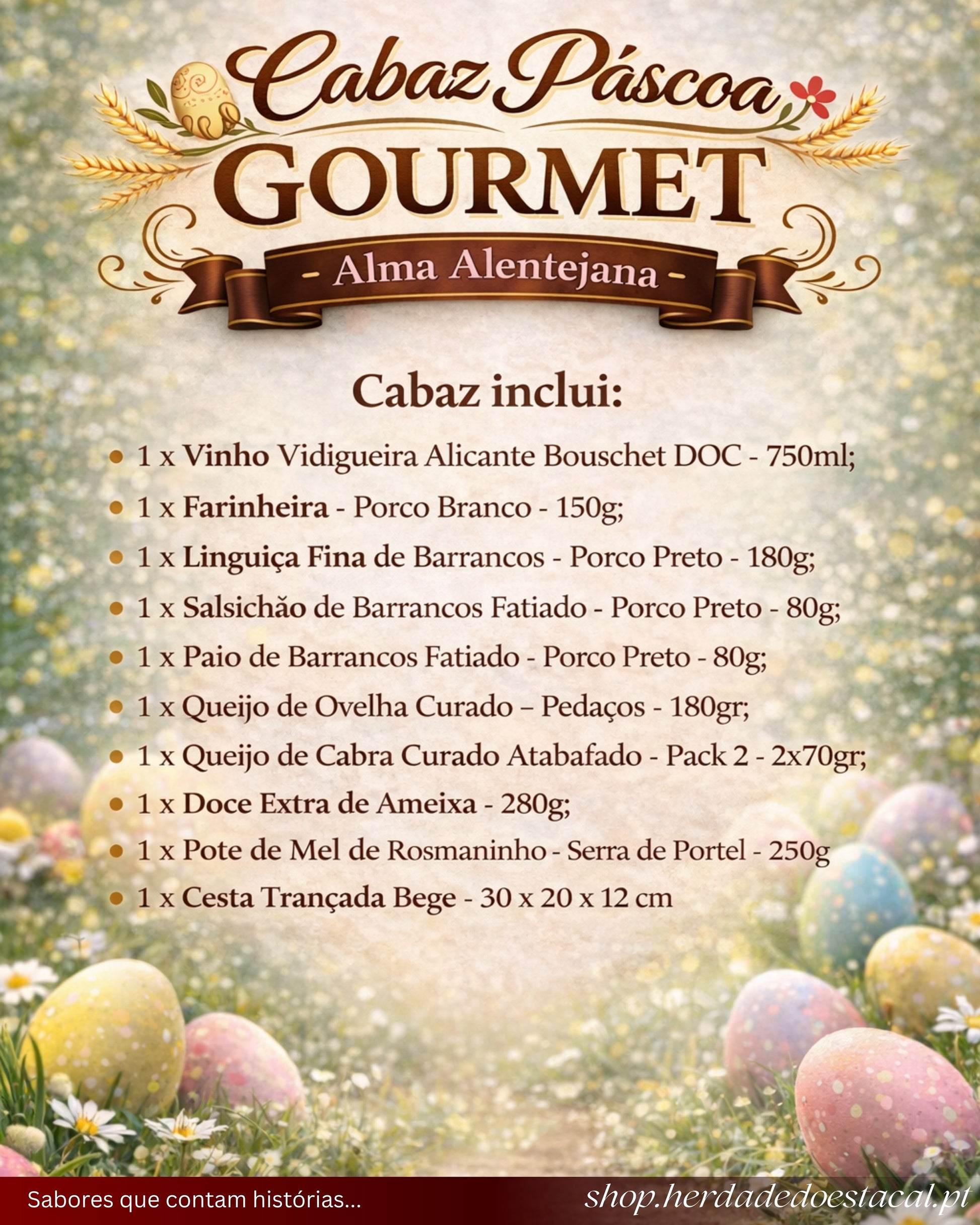 Schenken Sie zu Ostern eine wahre kulinarische Reise durch die authentischen Aromen der Alentejo-Region. Der Gourmet-Osterkorb von Alma Alentejana vereint eine einzigartige Auswahl traditioneller Produkte, sorgfältig zusammengestellt für ein reichhaltiges, authentisches und unvergessliches Geschmackserlebnis.