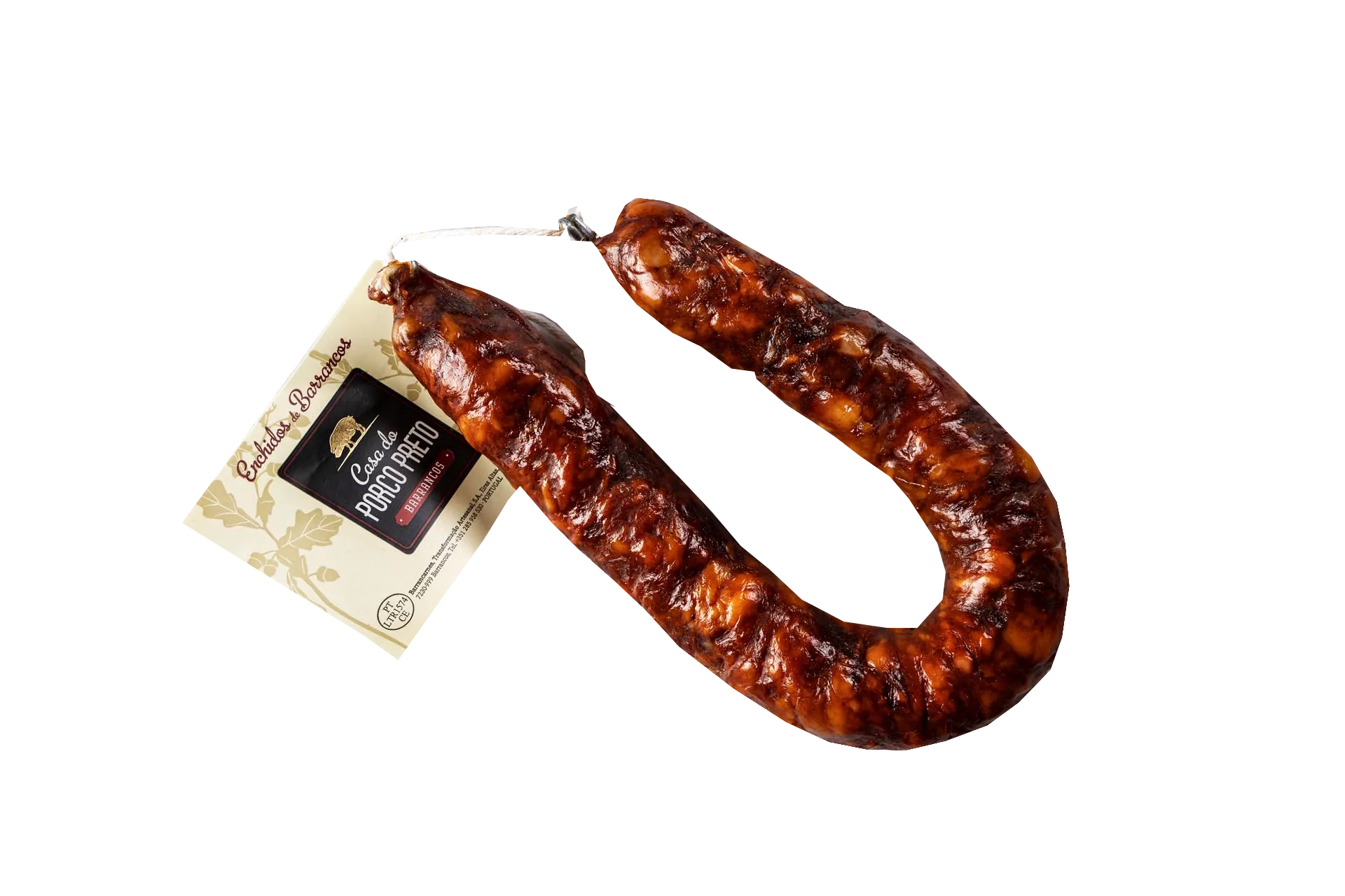 Chouriço de Barrancos de Porco Preto – enchido curado de aroma intenso, sabor rico e bem definido, fiel às técnicas artesanais da região.