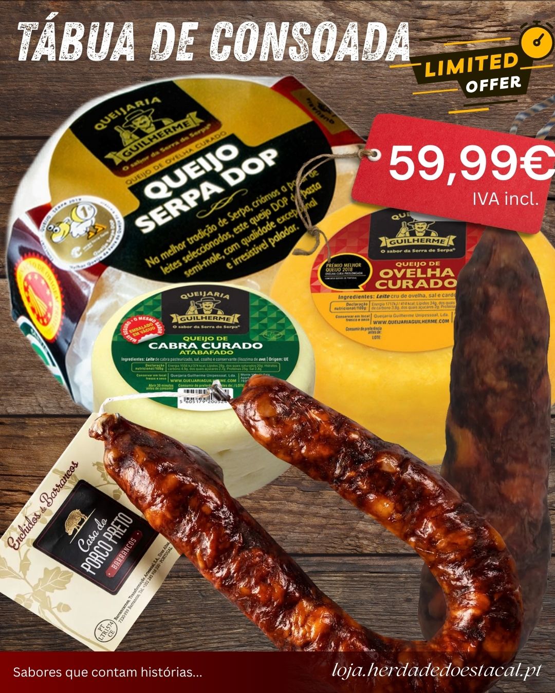 Uma tábua simples e autêntica, pensada para a Consoada, onde os produtos falam por si e criam um momento de partilha à mesa, acompanhados por pão rústico e vinho alentejano.