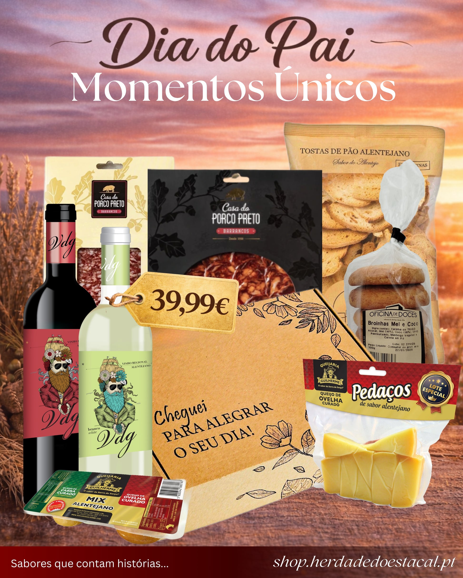 No Dia do Pai, ofereça mais do que um presente — ofereça momentos únicos à mesa. Este cabaz reúne uma seleção especial de produtos tradicionais alentejanos, pensados para criar uma experiência autêntica, cheia de sabor e tradição.