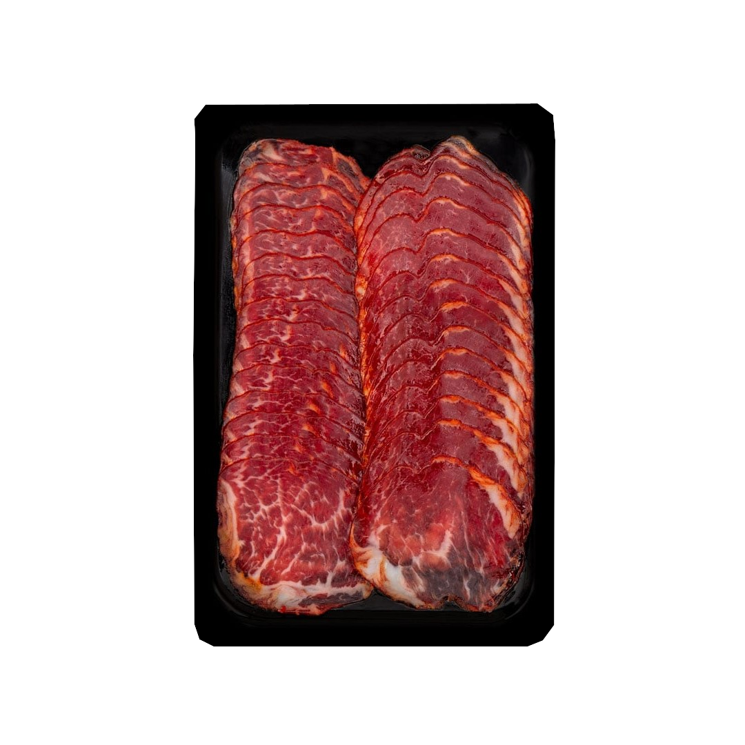 NOTA DE PROVA: “Rainha” da SEL, a Paiola é um produto nobre, companheira do Lombo. Peça da “presa do cachaço” do Porco Preto, revela uma textura suave, aveludada e pouco fibrosa, com um aspecto marmoreado ruby e brilhante, revelando um sabor pouco salgado e ligeiramente acidulado.
