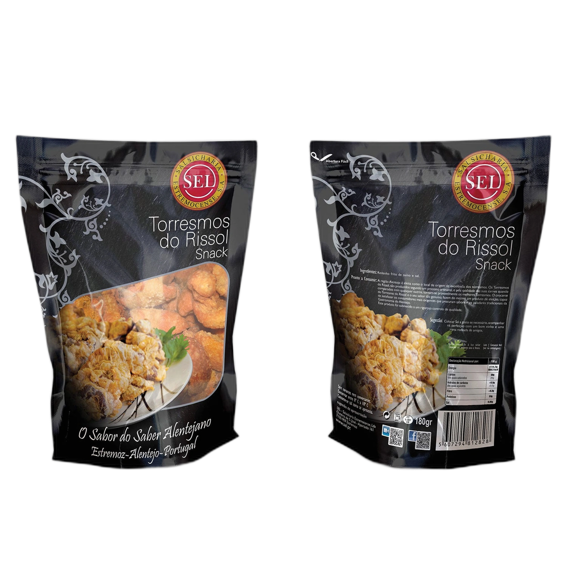 Os Torresmos Rissol Porco Preto de Campo da SEL são elaborados a partir de banha fundida de suíno seguindo de prensagem. Gordura frita de porco. O snack perfeito!